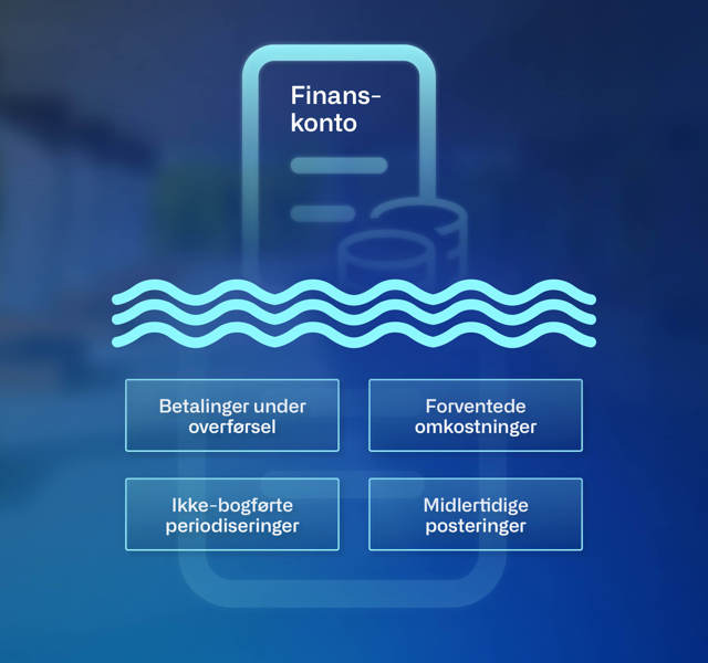 Følg transaktioner, der afventer, er delvist udlignet eller stadig er undervejs direkte på en finanskonto, fx cash in transit, sociale bidrag eller estimater for lageromkostninger.